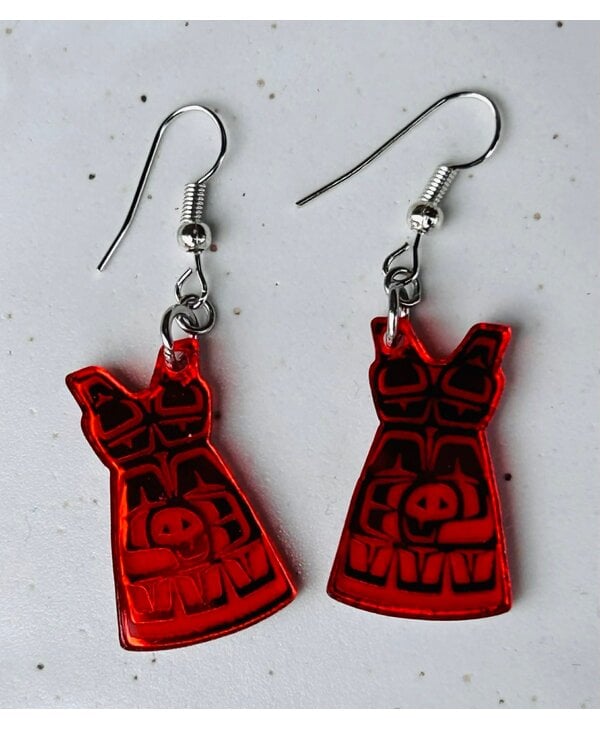 1.5" Red Dress Earrings - design by Andromeda Reece - Stó∶lō Gift Shop