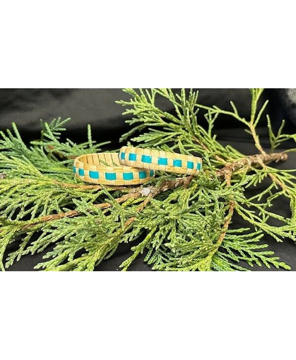 1.5" Woven Cedar & Mother of Pearl (teal) Earrings by Jasmine Jack - Stó∶lō Gift Shop
