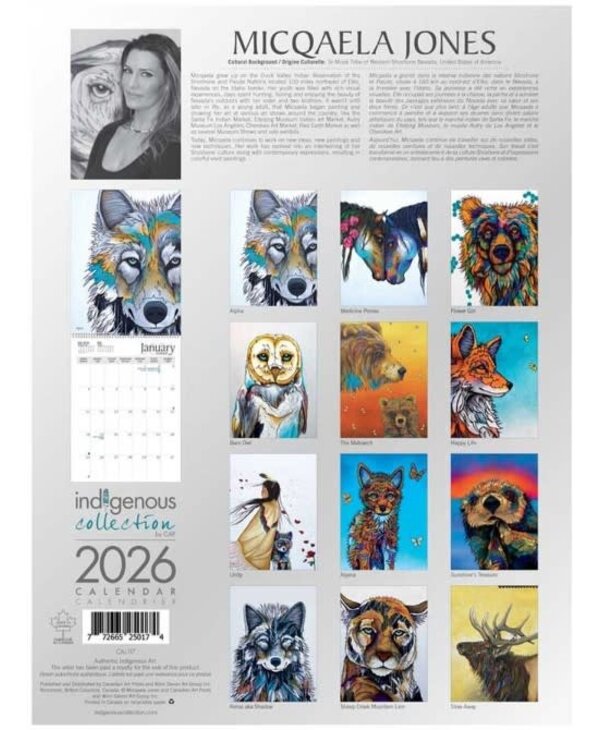 Our 12 month calendars are printed on FSC certified premium quality fine art paper, and are metallic coil bound and packaged in a protective sleeve. The artist's photo and biography are on