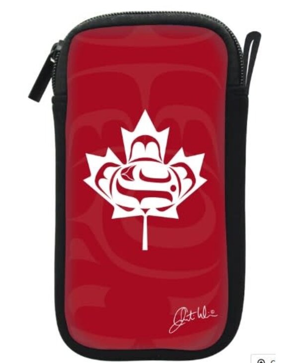 A killer whale is within the maple leaf and the red bands are each with a salmon design. Throughout my life, I have come to learn all the hardships and struggles that First Nations peopl...Read more