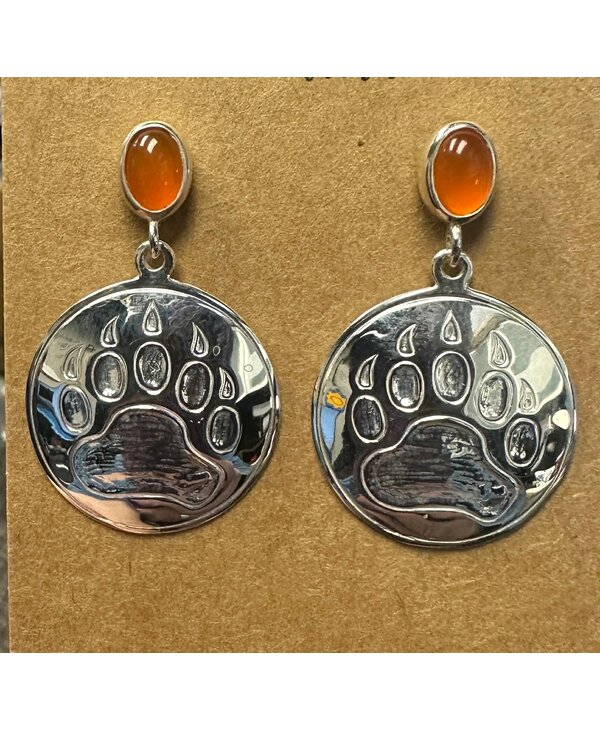 Bear Print Earrings With Inlay Carnelian by Jadeon Rathgeber - Stó∶lō Gift Shop