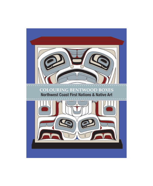 Colour traditional bentwood box designs from the ancient cultures of the Pacific Northwest. These carved and painted cedar bentwood boxes store sacred regalia or traditional foods.