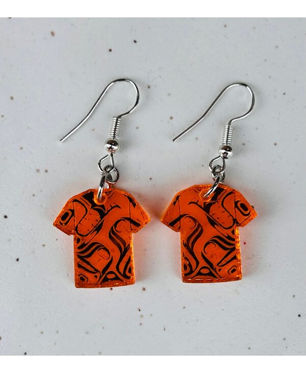 Mini Orange Shirt Earrings - design by Josh Davidson - Stó∶lō Gift Shop