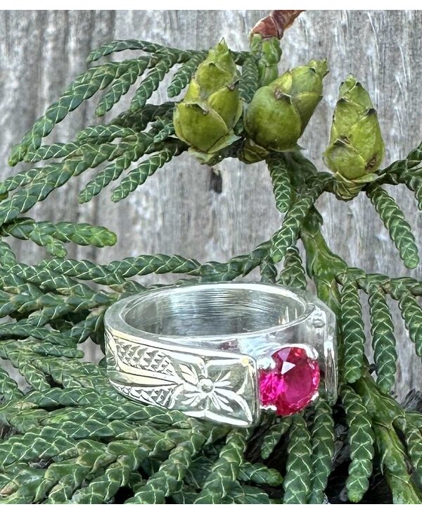 Beautiful resurrection style ring with Man made Ruby size 7...Read more