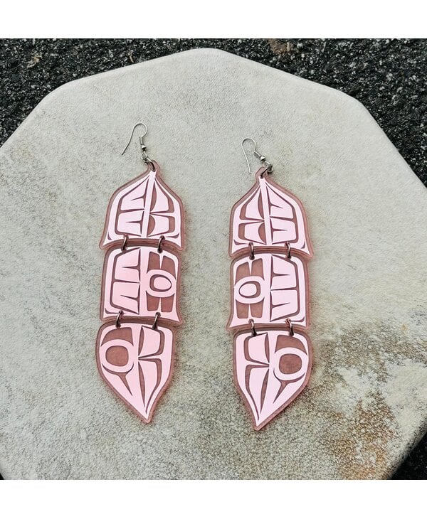 Light Pink 5" Mirror design feather earrings - Design by Andromeda Reece - Stó∶lō Gift Shop