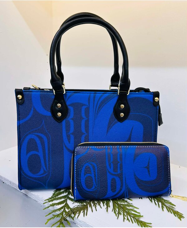 Purse & Wallet Set - Blue with Killer Whale Design by Josh Davidson - Stó∶lō Gift Shop