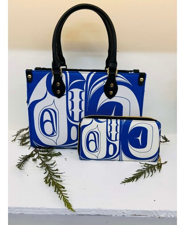 Purse & Wallet Set - Blue & White with Killer Whale Design by Josh Davidson - Stó∶lō Gift Shop