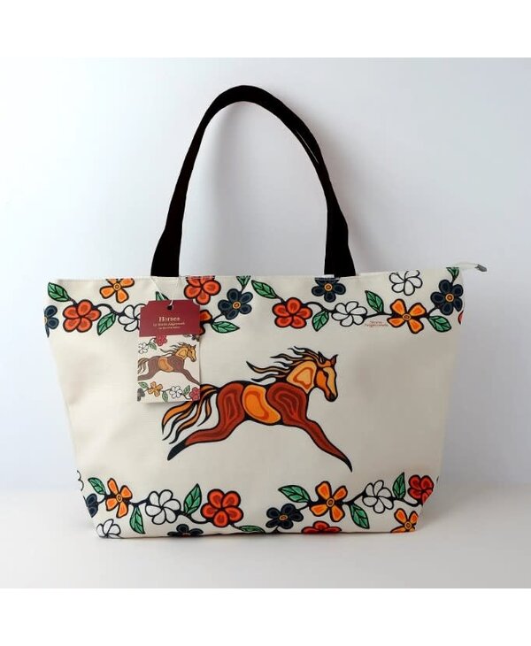 "Horses" Large Tote Bag 100% Cotton with zipper closure and inside pockets Size: 21" x 13.5" Artwork by Storm Angeconeb