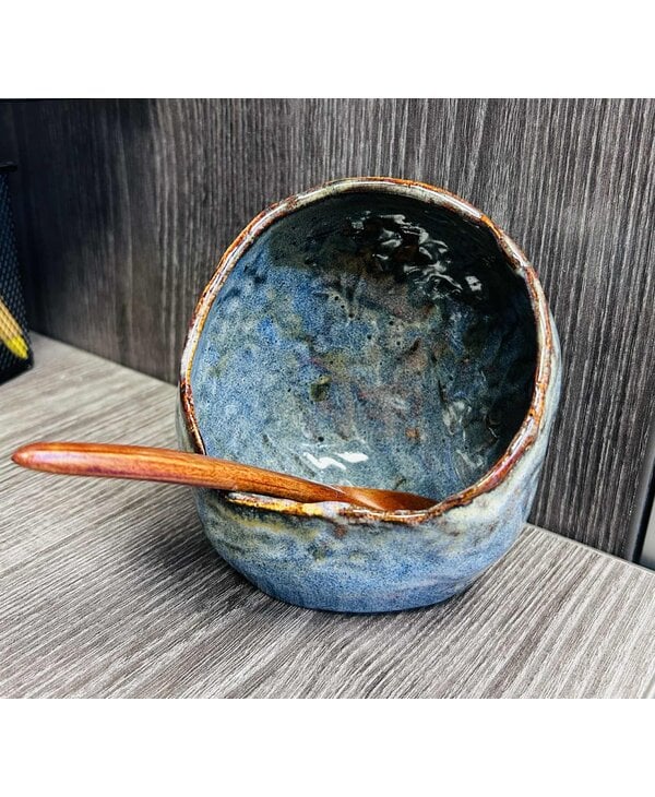 Pottery by Cynthia Robinson - Lrg. Salt Pig w Spoon - Stó∶lō Gift Shop
