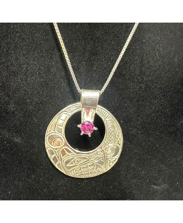 Eclipse Wolf Pendant with 5mm Pink Tourmaline by Richard Lang - Stó∶lō Gift Shop
