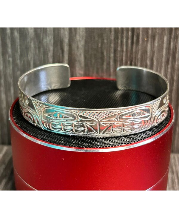 Hand Carved 1/2" Silver Bracelet - Orca by Richard Lang - Stó∶lō Gift Shop
