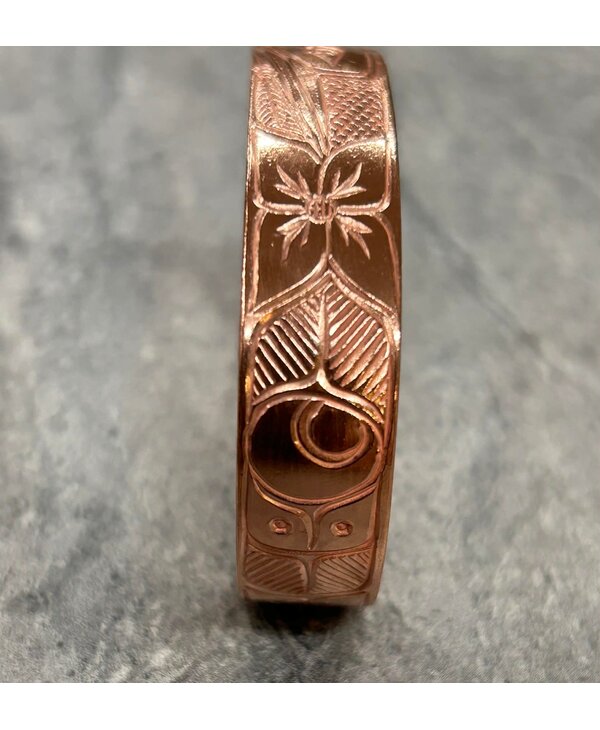 Hand Carved Copper .5" Bracelet -Hummingbird by Richard Lang - Stó∶lō Gift Shop