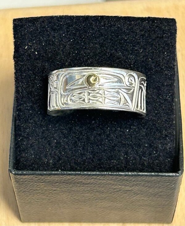 Hand Carved Silver Ring Solid Band s13.5 Bear by Richard Lang - Stó∶lō Gift Shop