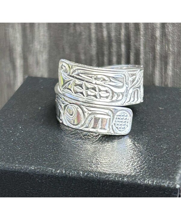 Hand carved Silver Wrap Ring - Eagle by Richard Lang SZ 7 - Stó∶lō Gift Shop