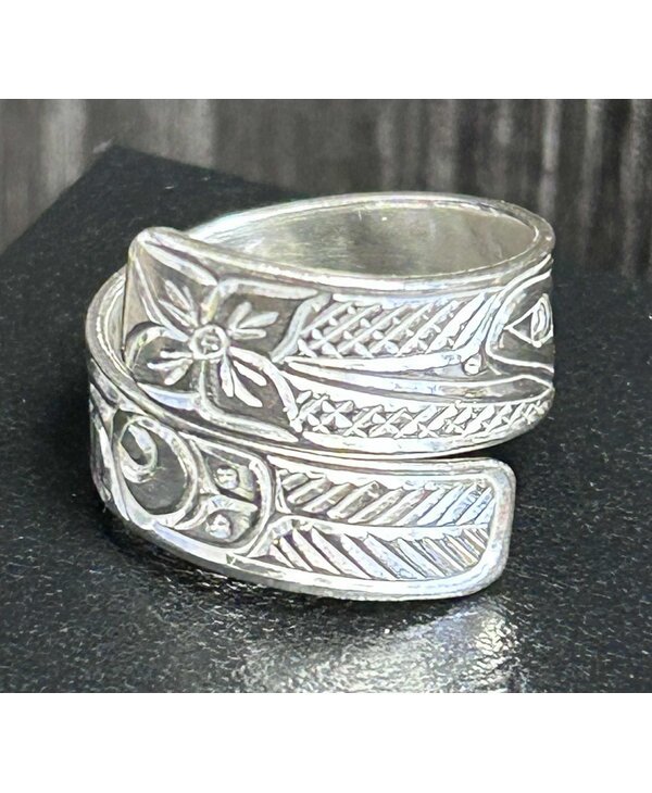 Hand Carved Silver Wrap Ring - Hummingbird by Richard Lang SZ 6.5 - Stó∶lō Gift Shop