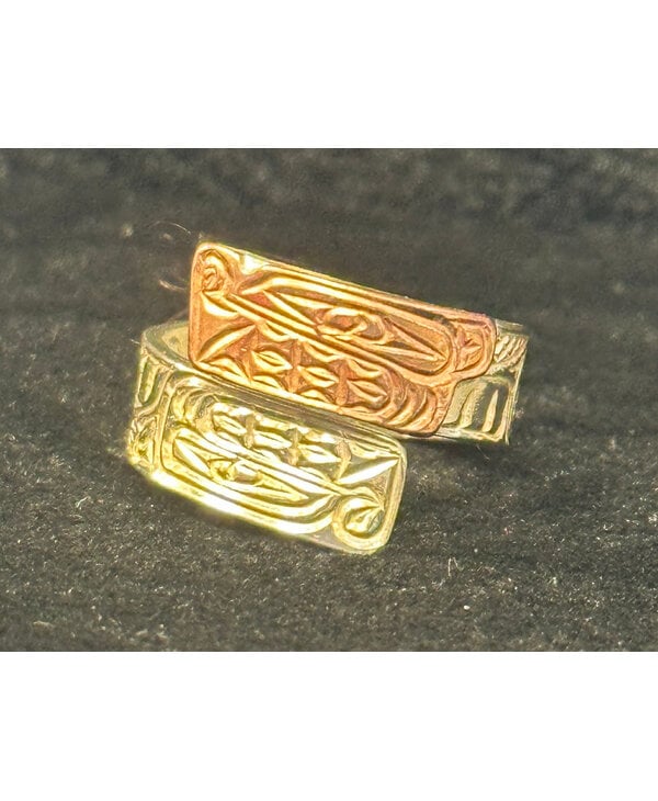 Hand Carved Wrap Ring with Copper Bear s6.5 by Richard Lang - Stó∶lō Gift Shop
