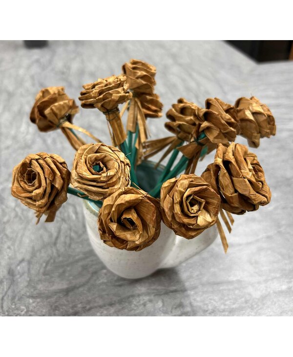 Our cedar roses by Lee Prevost may vary in size, on average the small measure 1.5 inches across the top.