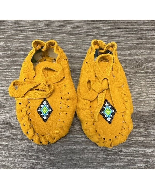 Hand Made New Baby Moccasin with Diamond Blue Flower -beading by Dena - Stó∶lō Gift Shop