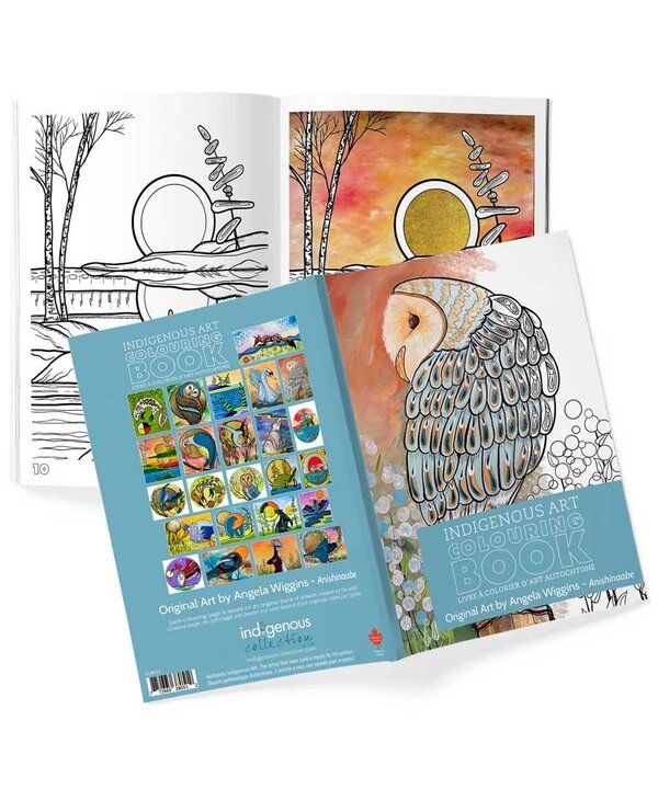 32 page Colouring Books are 8.5 x 11” featuring 28 coloring pages based on authentic original indigenous artwork. They also feature cultural information and the artist biography.