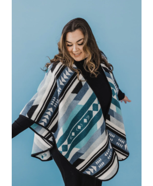 Turn heads with this incredible forever piece that speak for itself. Our shawls are reversible and made in Canada with our recycled wool blend fabric making them perfect for layering. This shawl showcases authentic Indigenous designs and will be your go-to accessory for every season. This shawl is your forever piece.