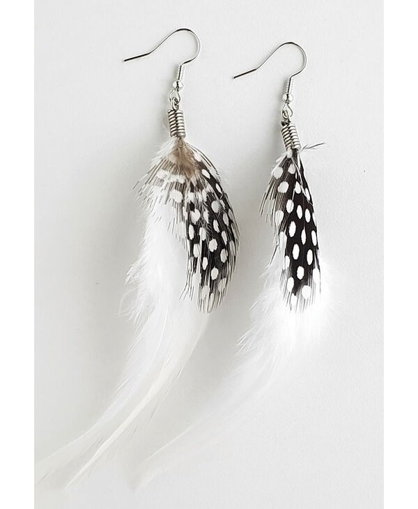 Natural white hackle and spotted guinea feather earrings - Stó∶lō Gift Shop
