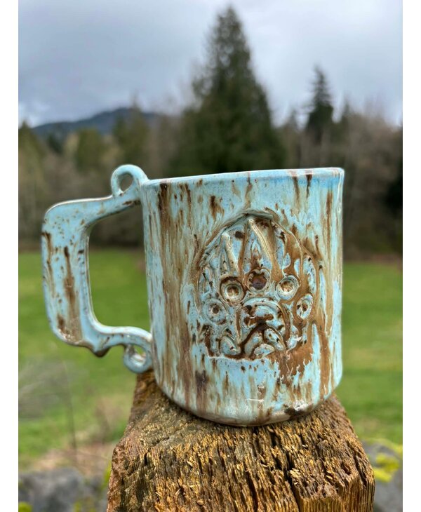 Pottery by Cynthia Robinson - 14 oz Mug with Bear Paw stamp - Stó∶lō Gift Shop