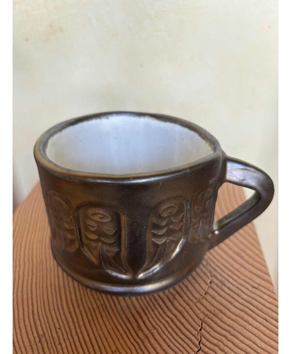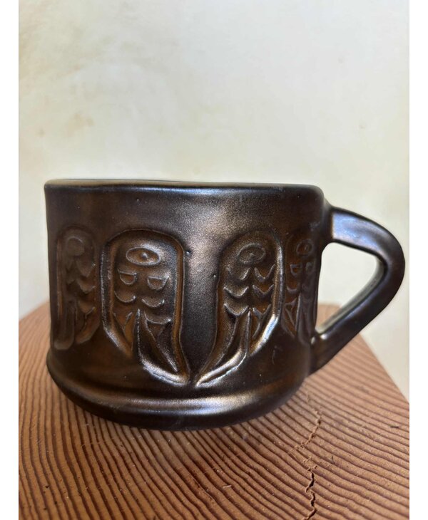 Cynthia's Eagle feather stamped mug is hand made, stamps used are her original art and handmade as well.