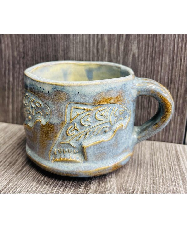 Pottery by Cynthia Robinson - Mug with salmon stamp - Stó∶lō Gift Shop