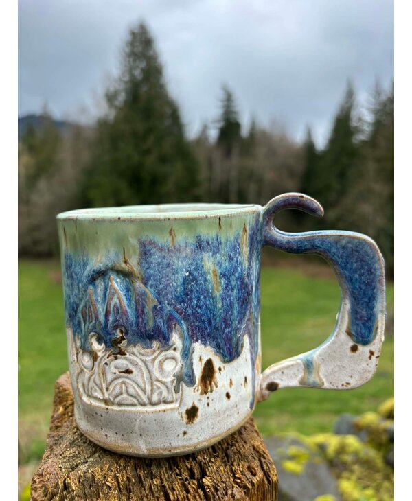 Each mug is hand made and unique. Microwave and dishwasher safe.