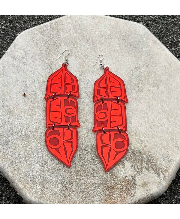 Red 5" Mirror design feather earrings - Design by Andromeda Reece - Stó∶lō Gift Shop