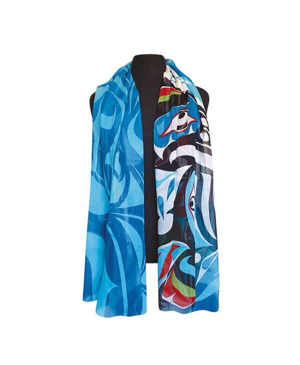 Signature Scarf - Raven and Killer Whale by Trevor Hunt - Stó∶lō Gift Shop
