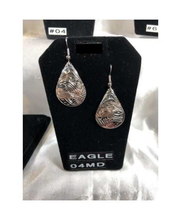 Silver Carved Eagle earrings by Vincent Henson - Stó∶lō Gift Shop
