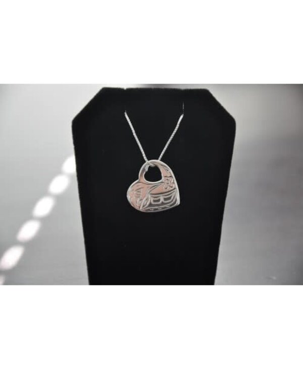 Sterling Silver Heart Shaped Necklace With A Hummingbird Design