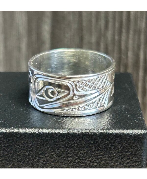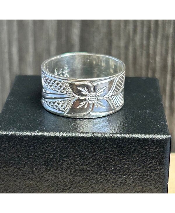 Silver Carved Ring by Richard Lang - Hummingbird size 10 - Stó∶lō Gift Shop