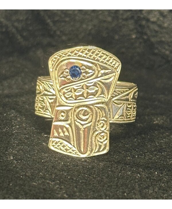 Silver Shield ring Orca Topaz Eye s11 by Richard Lang - Stó∶lō Gift Shop