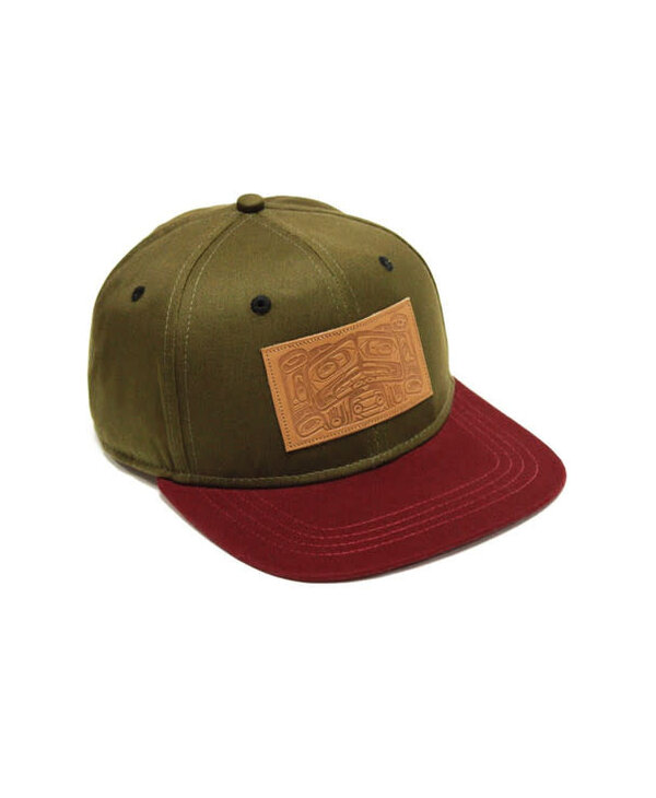 Top off your daily look with this classic streetwear style - the snapback hat. Featuring Indigenous artwork across the flat brim, 100% cotton twill construction and coordinating art on the front panel for a clean and subtle style.