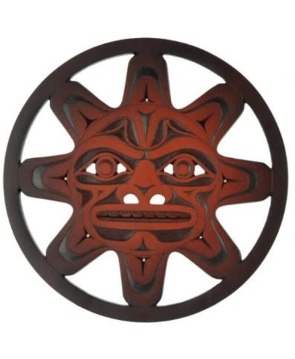Sun Mask Trivet available in two sizes, made of recycled glass. Made in Canada