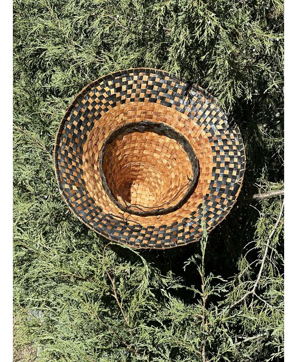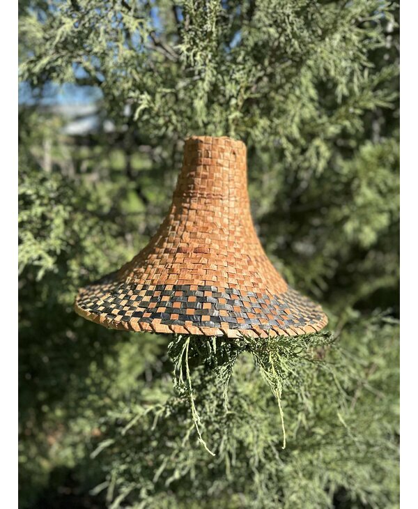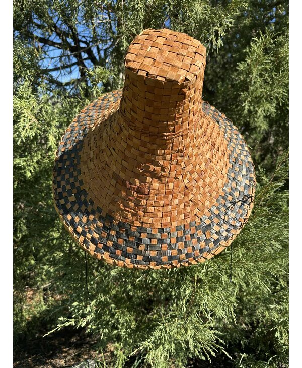 Traditional Woven Cedar Hat Black Strip by Johnny Tuktu