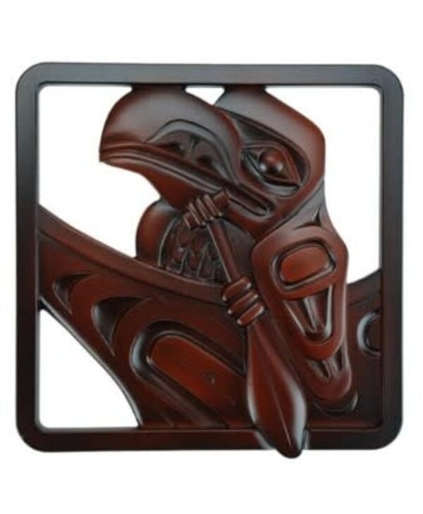 Recycled Glass Trivet with Raven Travelling design by artist Andrew Williams. Made In Canada.